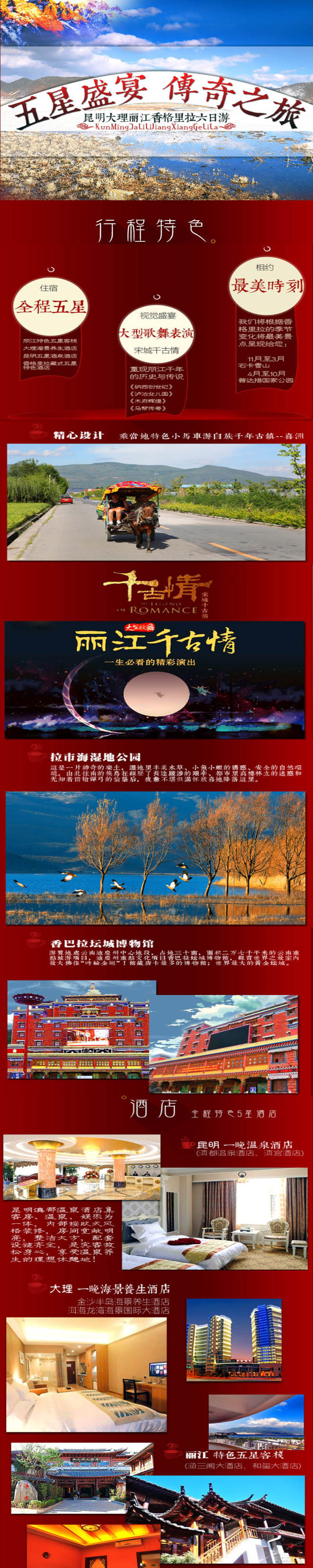 酒店早餐后,游览大理古城、洋人街,乘船荡漾洱海赠送观看洱海鱼鹰表演(游览时间约40分钟)“聆听白族鱼鹰世家的传奇故事”, 乘车前往白族最千年大古村部落【喜洲古镇】,独家推出:乘坐小马车(约40分钟),畅游“历史悠远、名人辈出”的白族古镇喜洲,穿行于古街小巷、时光仿若倒退百年。清末及明国时期,喜洲商帮的商号,曾遍及中国各大城市、印度及整个东南亚。可以自费品尝白族传统小吃—乳扇,还可以在四方街品尝到当地最有名的小吃-喜洲粑粑:、让您体味原滋原味的大理白族民族风情。赴南诏民族村参观大理白族特色建筑南诏民族村、用中餐、南诏银府秉承了大理“六朝古都”的皇室御用品质与灵魂,沿袭“寸家”子承父业的秘制银器加工工艺,用最传统的手工艺不断谱写和延续着新中华银器文化。品尝拥有千年历史的“头苦、二甘、三回味”的大理白族“三道茶”,欣赏白族三道茶歌舞表演;之后乘车至丽江【高速】,赴丽江宋城旅游景区观赏大型歌舞《丽江千古情》是丽江文化的魂,用IMAX3D的大片视觉,重现《纳西创世纪》、《泸沽女儿国》、《马帮传奇》、《木府辉煌》、《玉龙第三国》等丽江长达千年的历史与传说,引领观众穿越雪山,在旷远原始的洪荒之域、在泸沽湖畔的摩梭花楼、在挟风裹雨的茶马古道、在世外桃源般的香巴拉相约一场风花雪月的邂逅,感受一个美丽的夜晚。晚餐后夜游丽江古城,漫步四方街在世界文化遗产丽江古城中寻味纳西民族的纯朴文化。 |