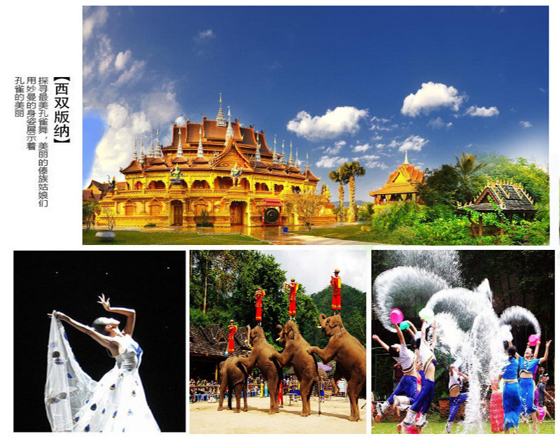 酒店早餐后,沿中国第一条穿越热带雨林的高速公路到达野象谷(国家AAAA级风景区),沿途观赏热带田园风光,感受知青情怀;游览野象谷风景区欣赏精彩的驯象表演、蝴蝶馆、百鸟园、蟒蛇园;(自理景区索道单程50元双程70元/人)乘坐观光索道穿越热带雨林、参观树上旅馆,欣赏植物千年绞杀王、植物板根及老茎生花等景观和许多珍稀植物,使您赏尽热带雨林风貌。后前往游览国家AAAA级景区---原始森林公园(景区环保车自理40元/人)游览百米花岗岩浮雕、孔雀放飞、爱伲山寨、金湖传说、九龙飞瀑、曼双龙白塔、民族风味烧烤场、民族风情演艺场等;参加具有当地民族特色的泼水狂欢、少数民族乐器表演、漫步热带沟谷雨林;晚餐后入住酒店 |